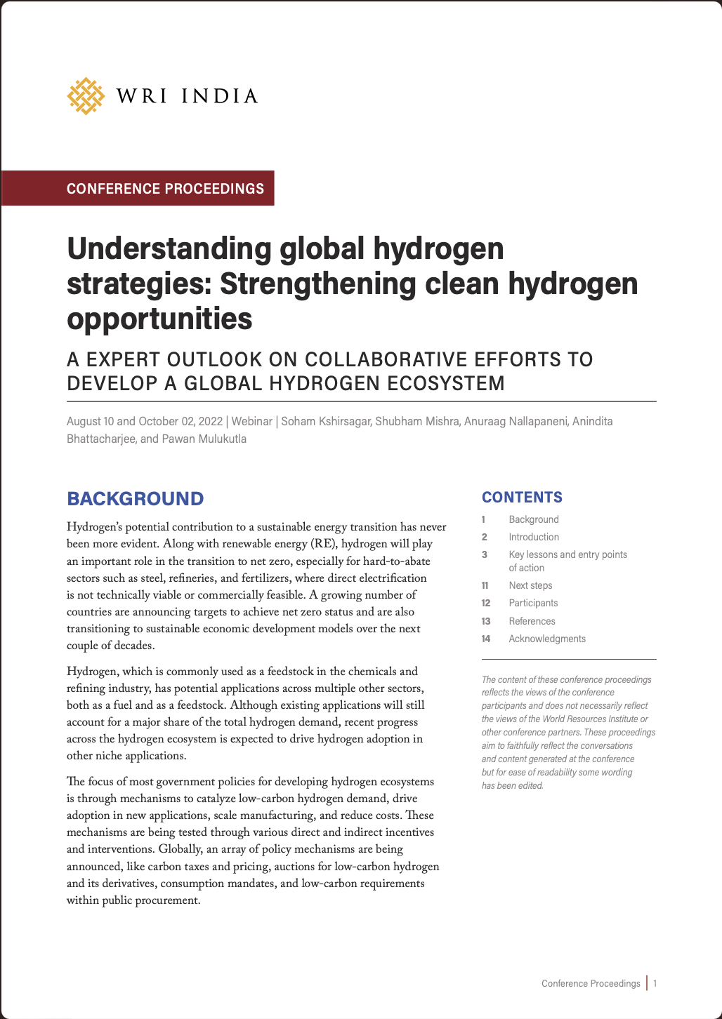 WRI India’s webinar series on "Understanding Global Hydrogen Strategies" aim to facilitate an understanding of the various approaches taken by countries to develop a robust clean hydrogen ecosystem. The two-part webinar series held on August 10, 2022, and October 20, 2022, featured the participation of 10 countries from around the world. The discussions focused on the importance of expeditious and widespread implementation of hydrogen strategies and roadmaps, supported by decisive and effective legislations, to unlock the immense future potential of clean hydrogen supply and demand.