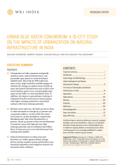 For the Indian context there has been limited study of the interlinked impacts of urbanization on natural infrastructure. In this new study by WRI India we trace the changes to the built footprint (built-up area) and impacts on blue cover (surface water), green cover changes (vegetation) and the groundwater recharge potential. For the 10 most populated cities in India we analyze satellite imagery to study the core city (0-20 km) and peripheral city (20-50 km) regions and the changes between 2000 and 2015.
